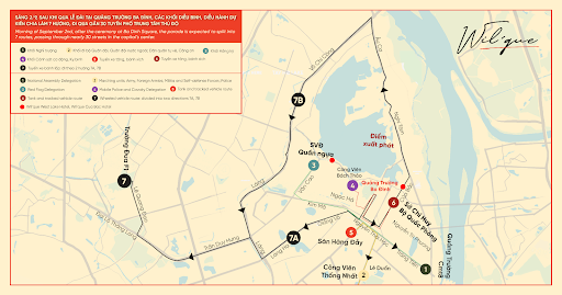 On the morning of September 2, after the parade at Ba Dinh Square, many main roads in central Hanoi will be restricted to traffic. The list down below: