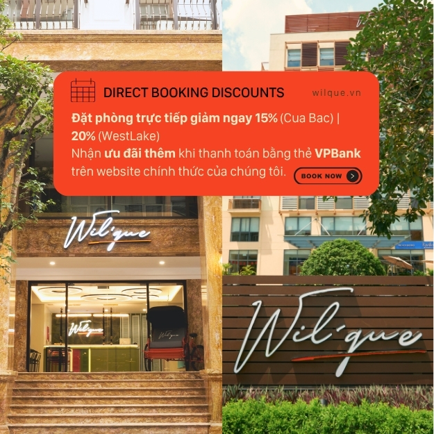 Tại Wil'que, chúng tôi muốn bạn khám phá tâm hồn đích thực và sôi động của Hà Nội. Tham gia Wil'Discover - mạng lưới các điểm và dịch vụ địa phương được quản lý chu đáo của chúng tôi. Vấn đề không chỉ là nơi bạn ở; đó là việc khơi dậy bầu không khí chân thực trong cộng đồng của chúng ta và góp phần tạo nên nhịp điệu tích cực cho bối cảnh địa phương. Hãy xem các đối tác của chúng tôi bên dưới thông qua Wil'Discover và nhận được các đặc quyền độc quyền tại các cửa hàng và dịch vụ tuyệt vời của họ!